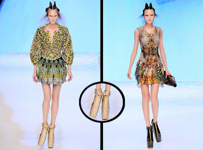 Immediately when i saw those high heels, i knew it came from Alexander McQueen's collection. I'm on style.com all the time, you have no idea. lol. Anywho, McQueen is one of my favorite designers because his style is never the same. It's always crazy. Always random. And never normal. I absolutely love it!